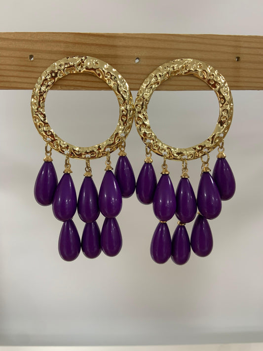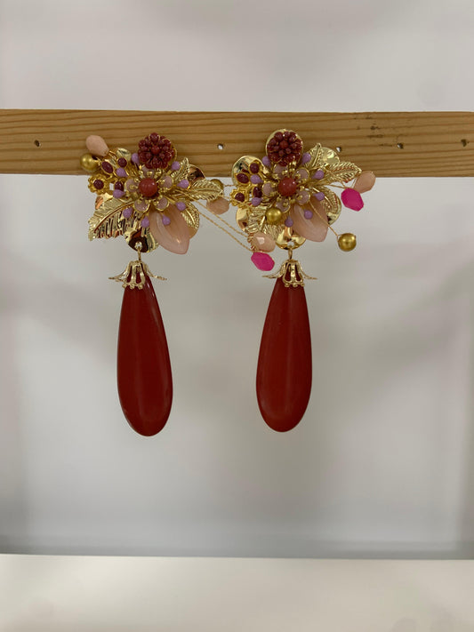 PENDIENTES DORADO FLOR NEGRO Y LAGRIMA