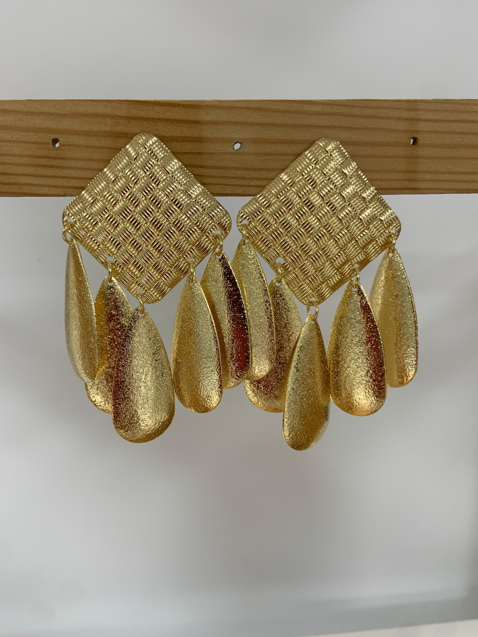 PENDIENTES CUADRADOS LAGRIMAS DORADOS