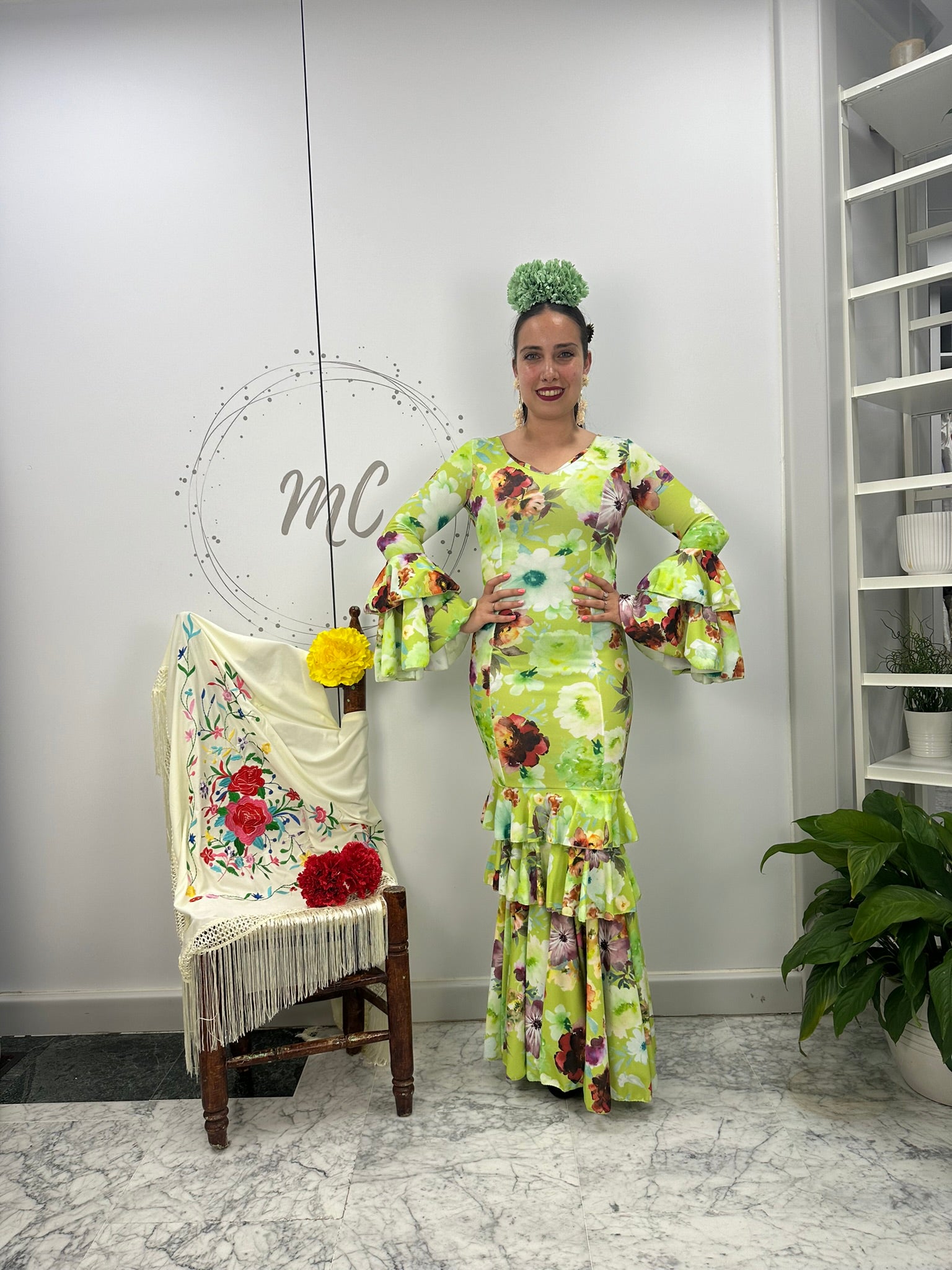 VESTIDO FLAMENCA FLORES VERDE